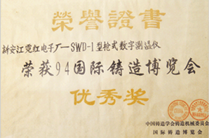 SWD-1型槍式數(shù)字測(cè)溫儀榮獲94國際鑄造博覽會(huì)優(yōu)秀獎(jiǎng)